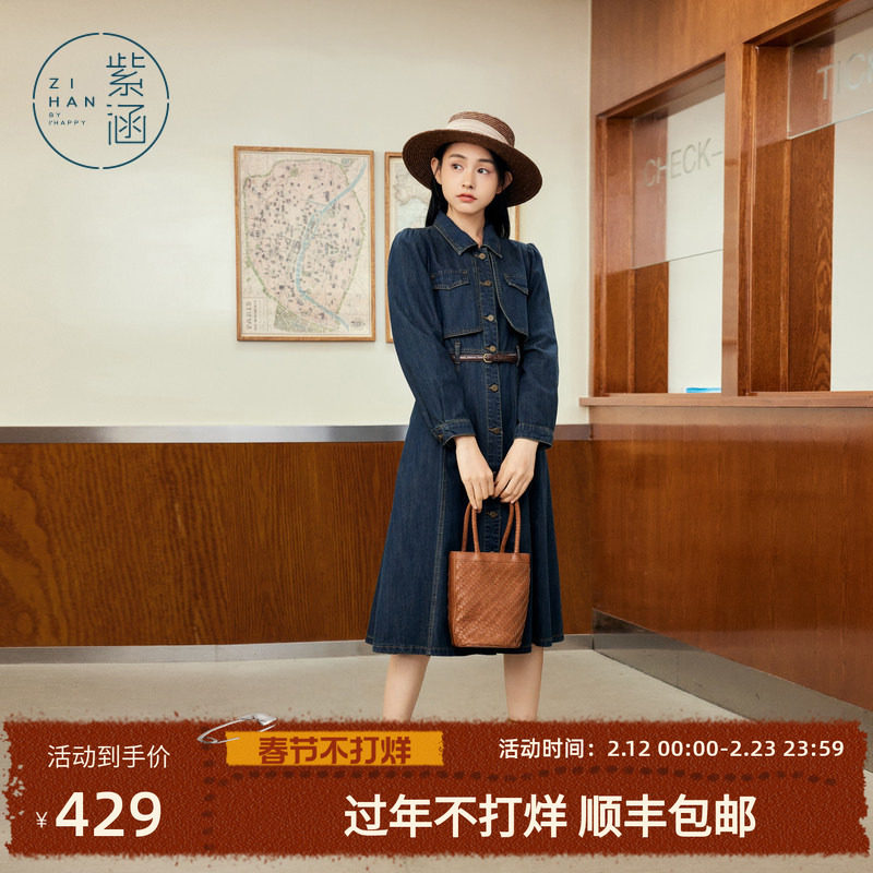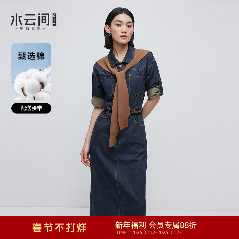 水云间复古风蓝色牛仔连衣裙女中长款收腰显瘦裙子通勤2025秋季款