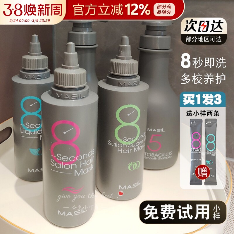 Masil玛丝兰8秒发膜烫染修复干枯八秒柔顺护发素水液体发膜正品女