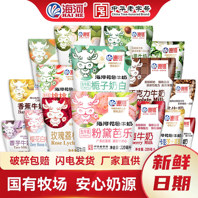 海河牛奶新品可可牛奶200ml*8盒*2提营养风味奶儿童学生草莓牛奶