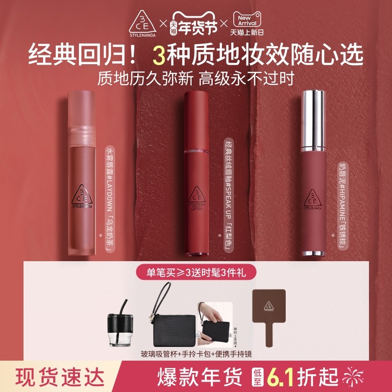 【新年礼物】3CE水雾唇露丝绒唇釉口红唇膏持久裸色彩妆女送礼