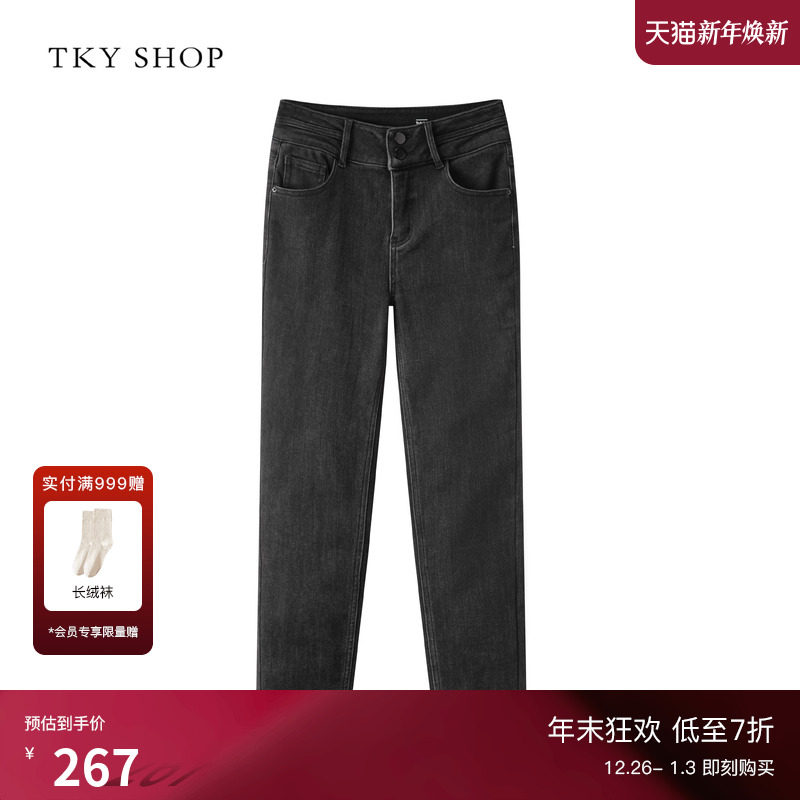 TKY SHOP黑色高腰显瘦小脚裤女2025年新款修身直筒牛仔裤简约长裤