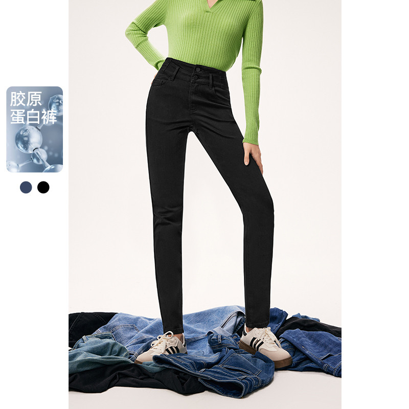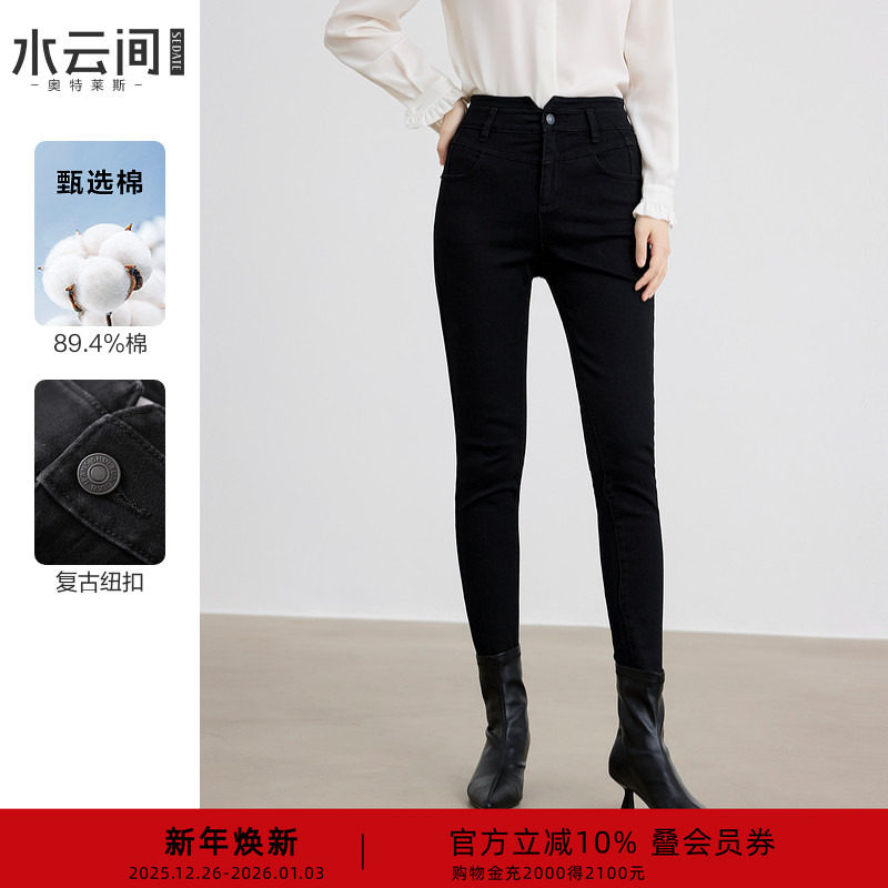 水云间黑色小脚高腰牛仔裤长裤子女简约百搭修身显瘦2025秋冬新款