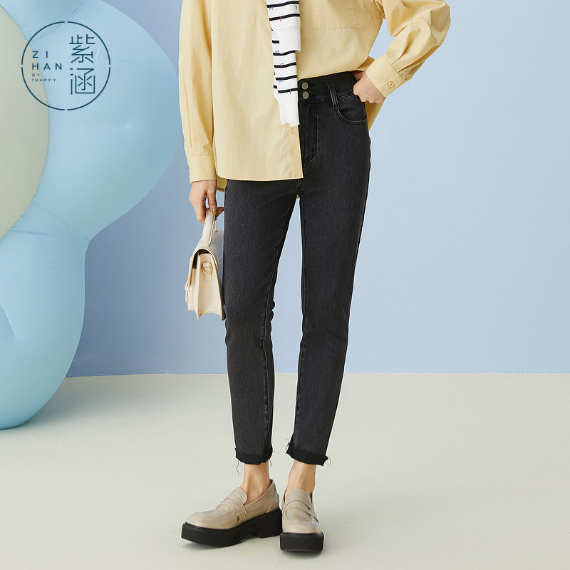 紫涵黑色修身牛仔裤女春秋季新款高腰显瘦紧身长裤弹力小脚铅笔裤