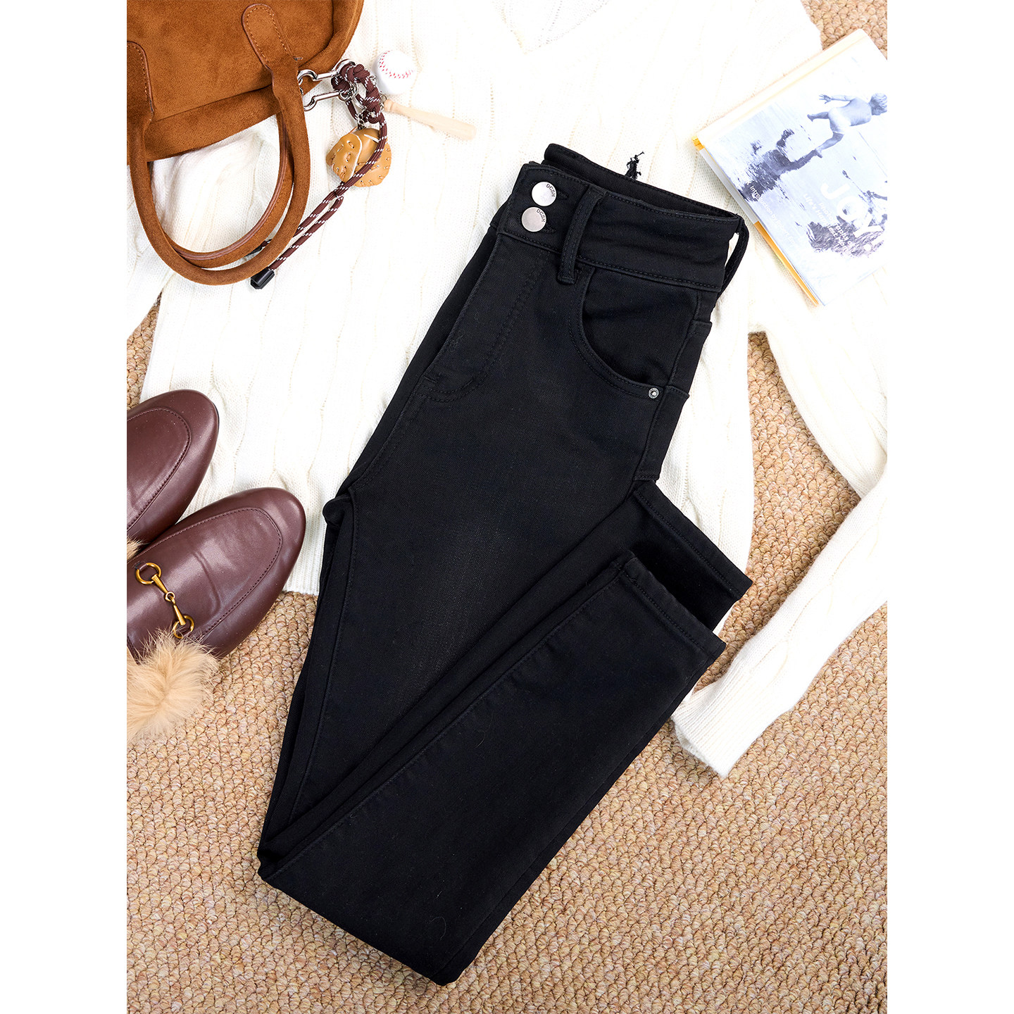 高腰黑色牛仔裤女小脚长裤[第4名]