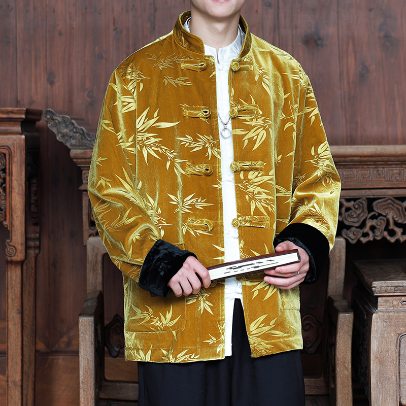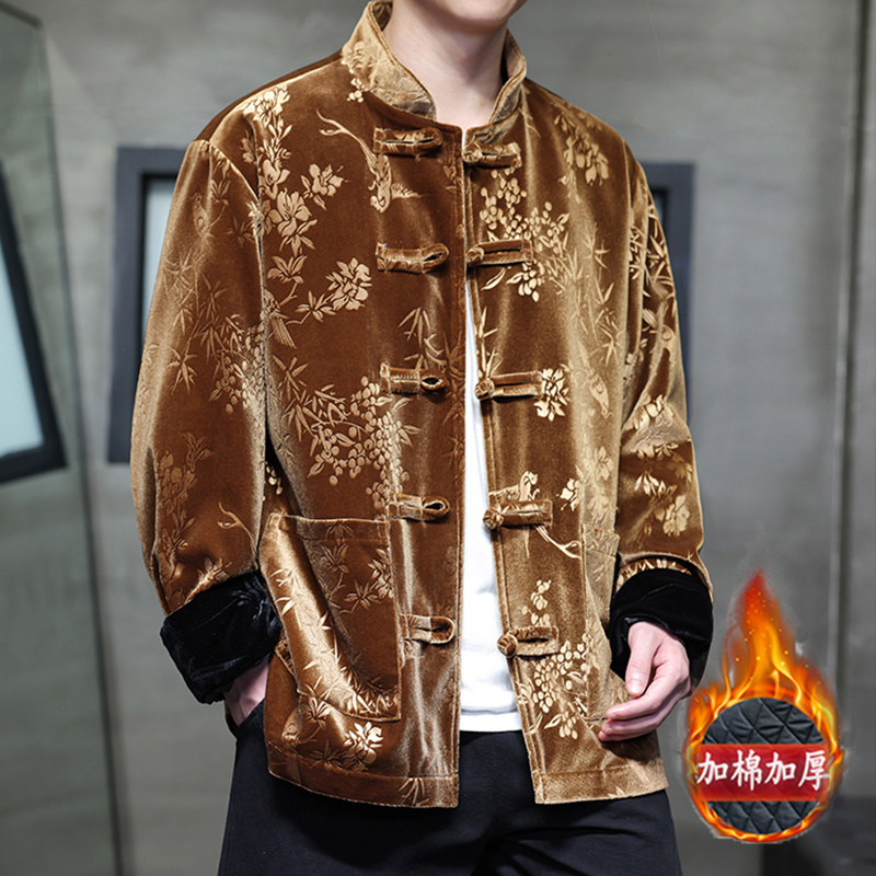 秋冬季金丝绒唐装加棉加厚棉服外套男士中国风提花高级感保暖夹克