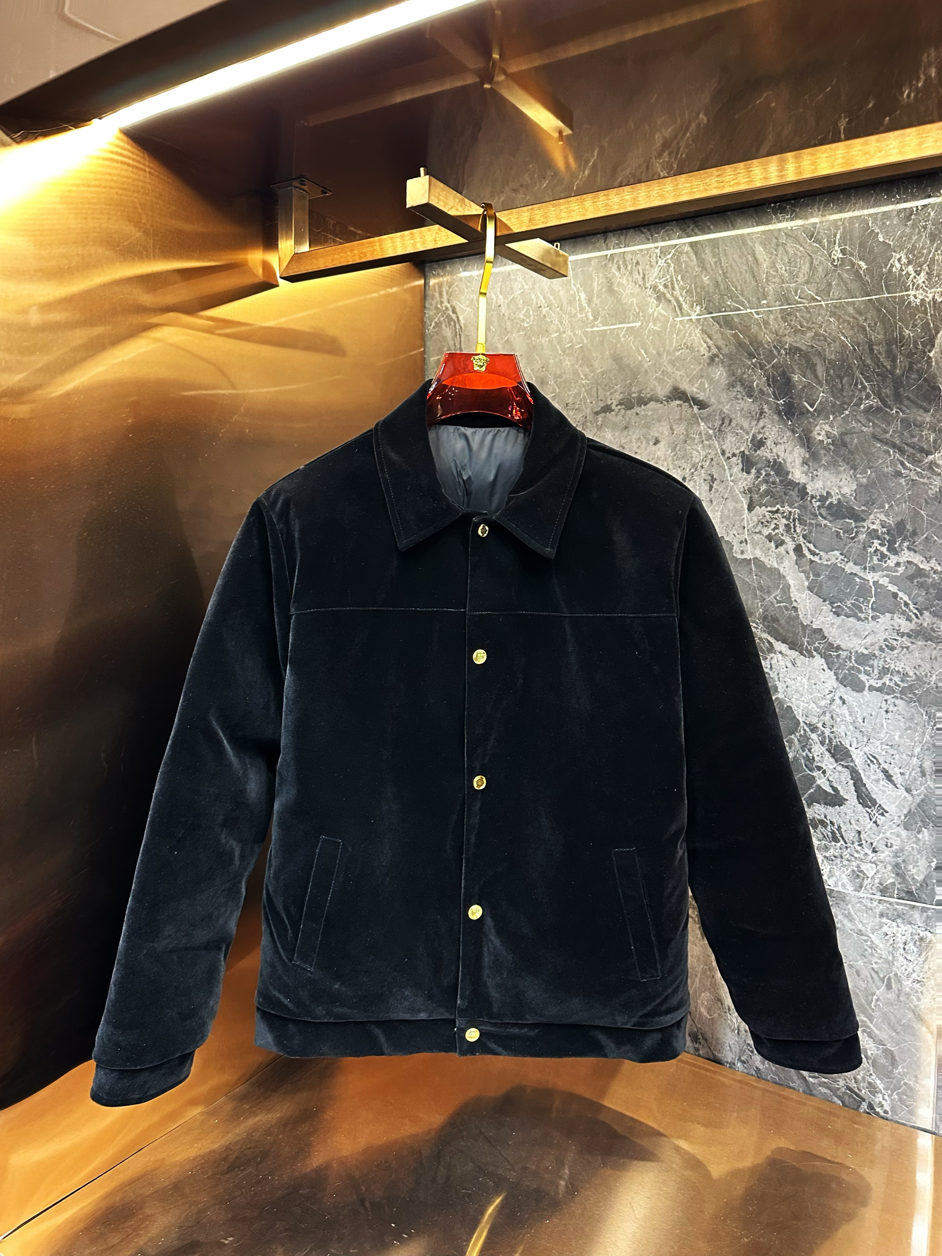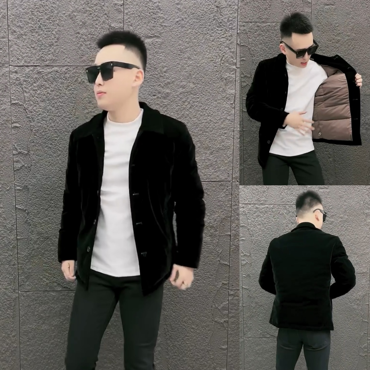 2024秋冬新款金丝绒外套男时尚休闲百搭净版翻领商务行政棉服夹克
