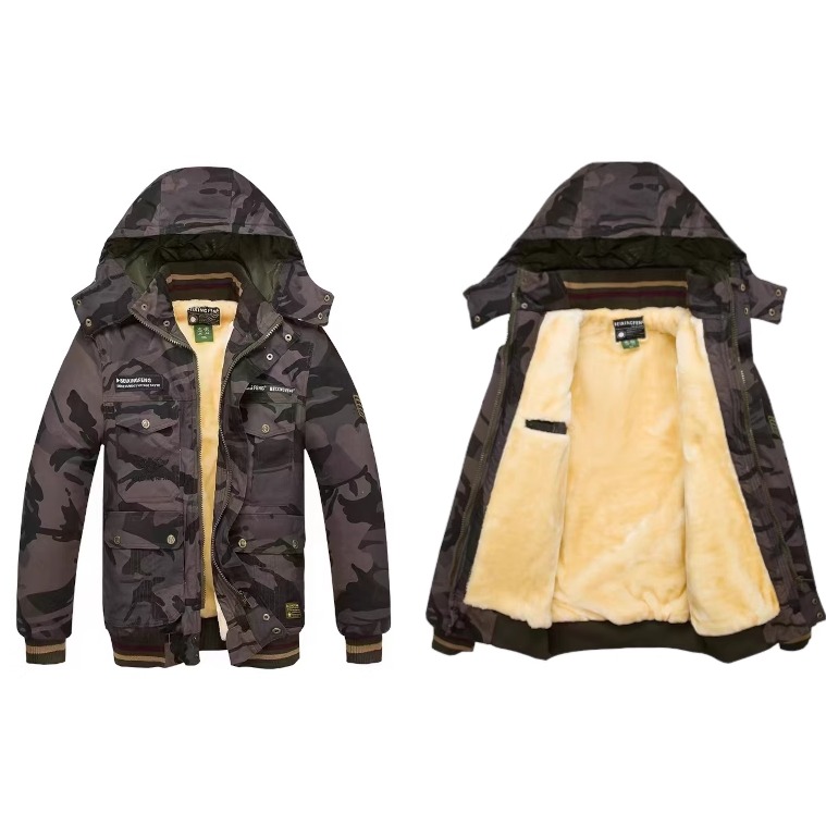 罗蒙棉袄男士加绒皮毛一体棉服金丝绒夹棉加厚中老年连帽可拆外套