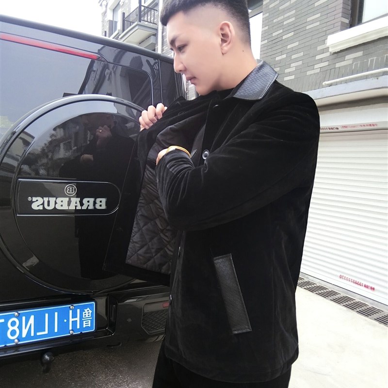 轻熟商务风男黑色系皮领金丝绒棉服男装上衣翻领加棉加厚夹克外套