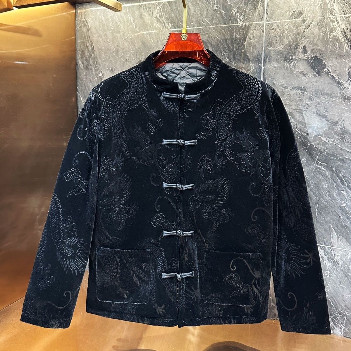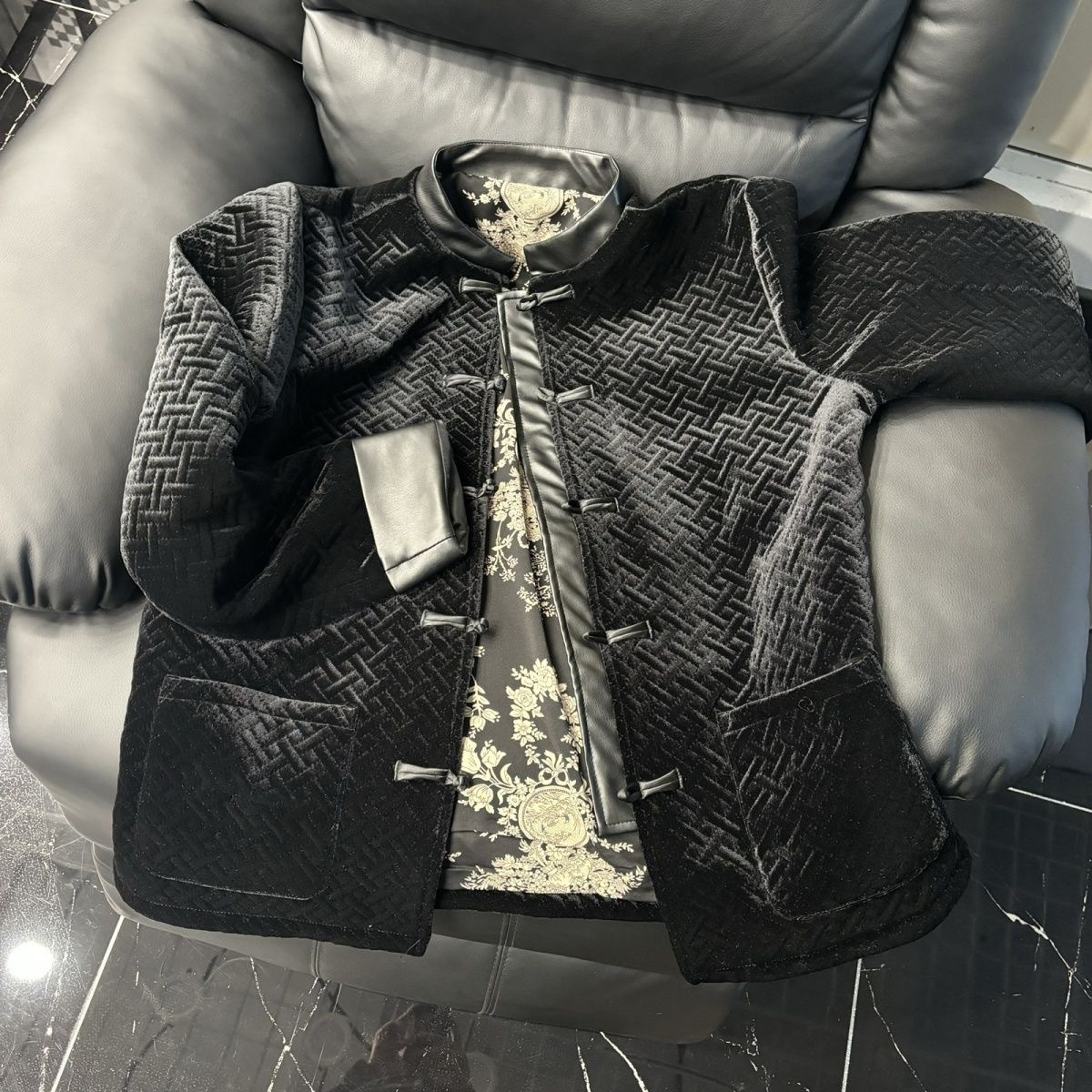 2025秋冬中国风男装丽丝绒唐装立领棉衣加厚金丝绒棉袄外套大码男