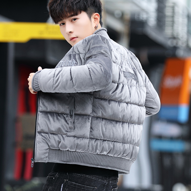 冬季棉衣男士金丝绒棉袄青少年修身休闲羽绒棉服立领纯色帅气外套