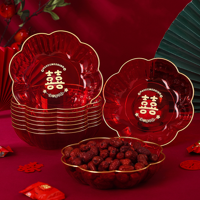 2025新款结婚喜盘糖果盘新婚摆件婚礼喜字水果盘婚庆创意用品大全