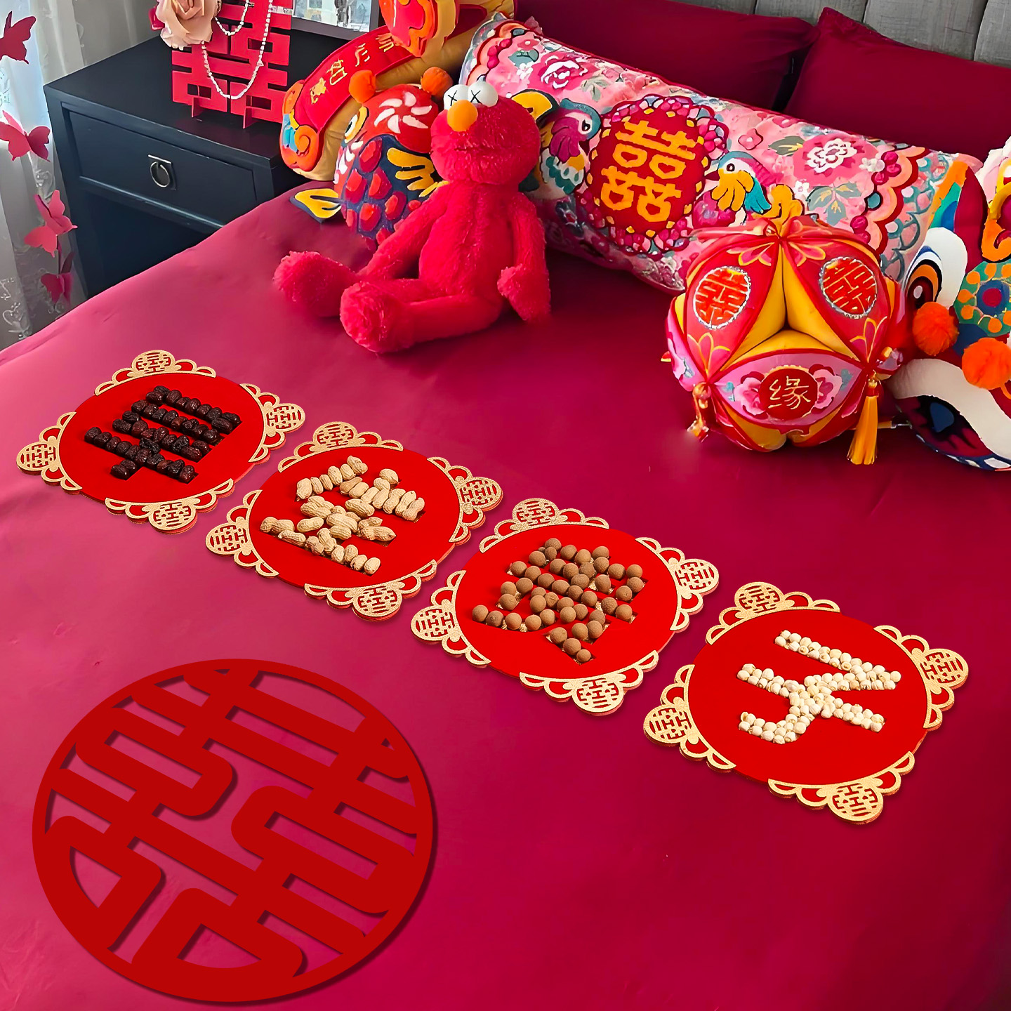 结婚压床摆件早生贵子模具模板婚庆婚礼创意喜字婚床婚房布置装饰