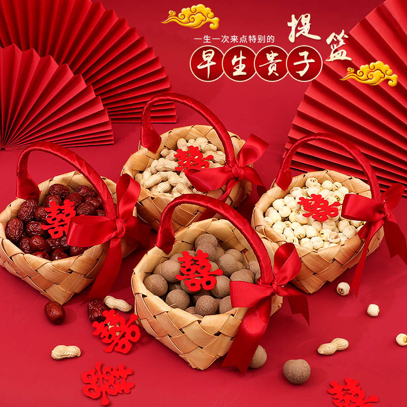 结婚早生贵子压床摆件创意婚礼喜糖干果手提篮子婚房装饰布置用品