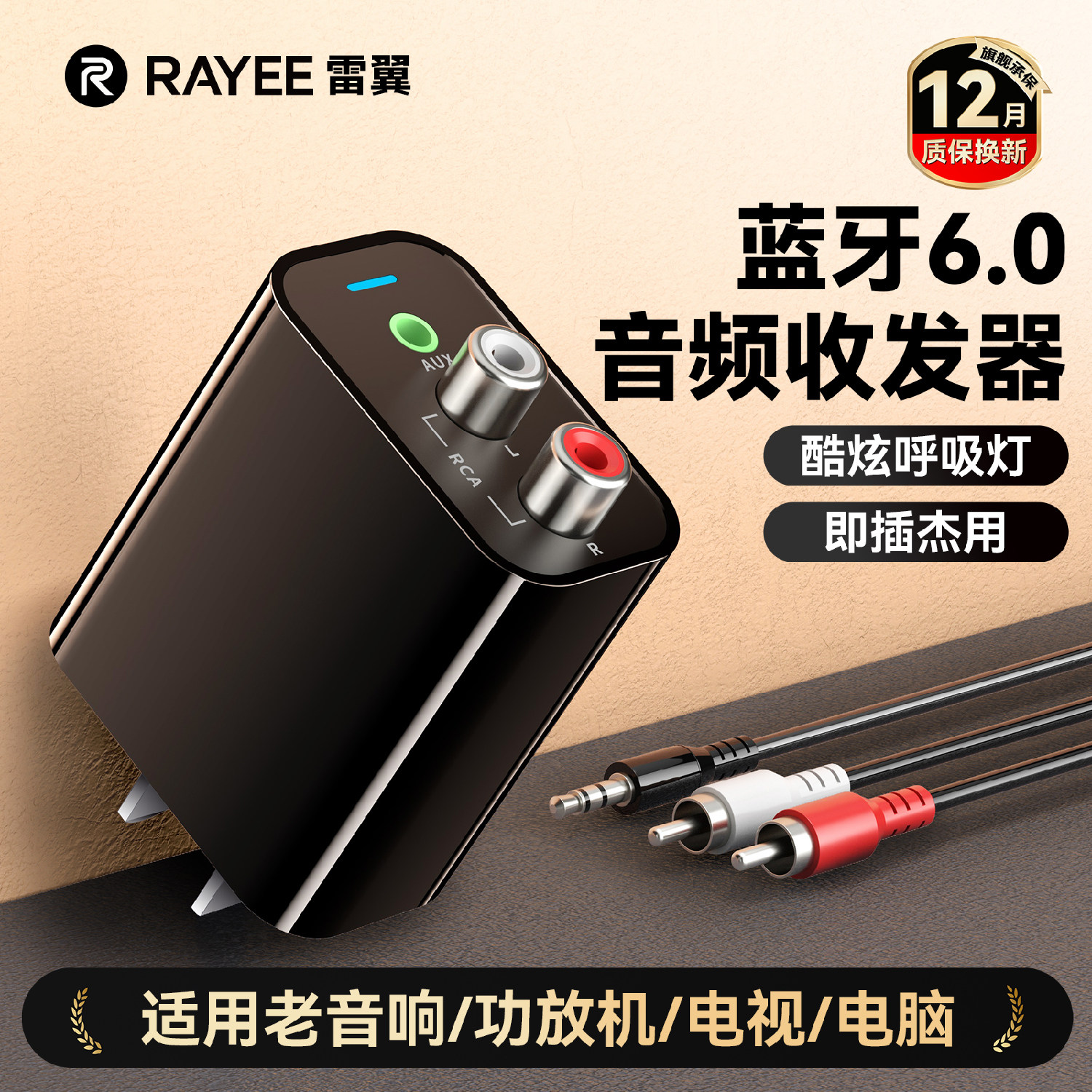 雷翼6.0蓝牙音频接收器转老音箱响功放专用电脑视无线发射器模块