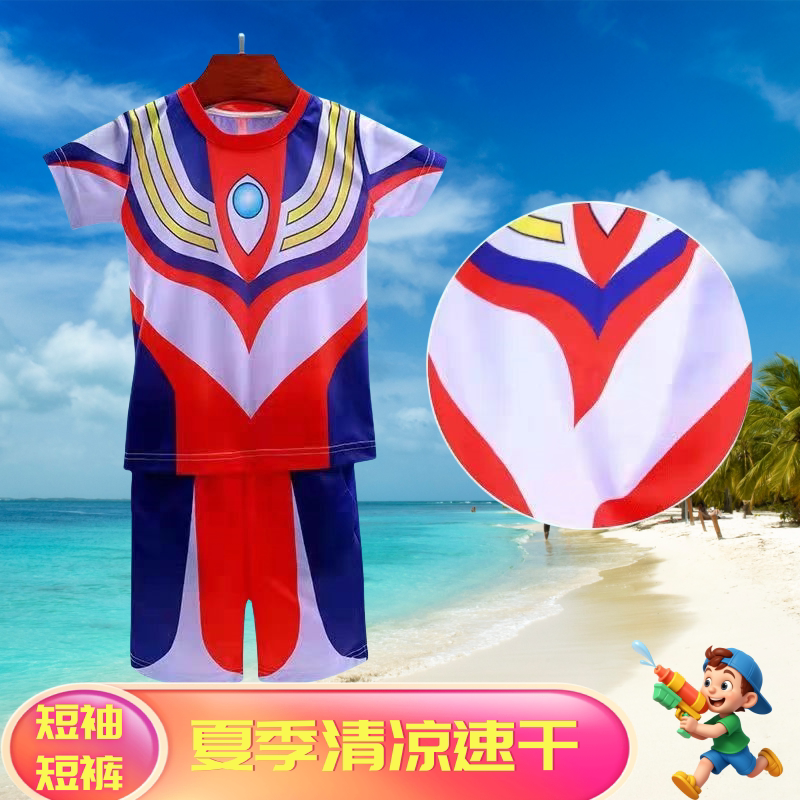 奥特曼迪迦短袖男童夏季衣服儿童套装速干赛罗男孩t恤cosplay服装
