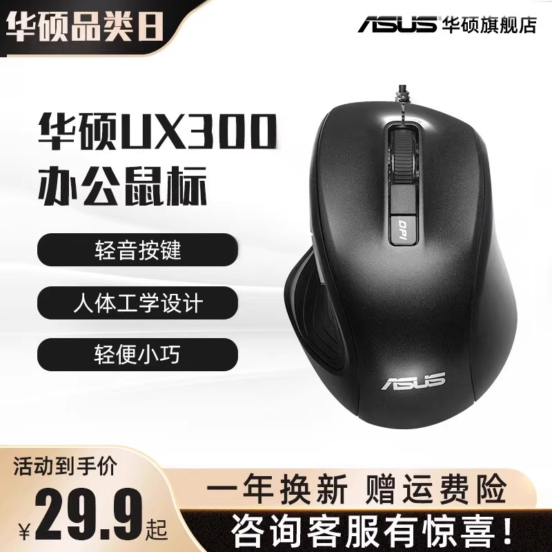 华硕UX300 办公家用有线静音无声人体工学设计鼠标男女通用鼠标