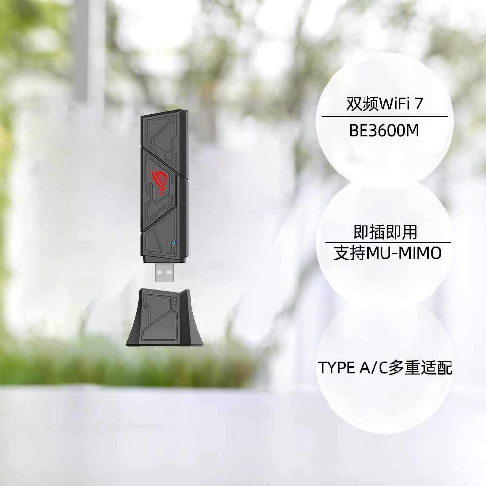 【自营】华硕(ASUS)ROG魔钥WiFi7双频3600M无线网卡 USB智能免驱动笔记本台式机电脑即插即用USB-BE90