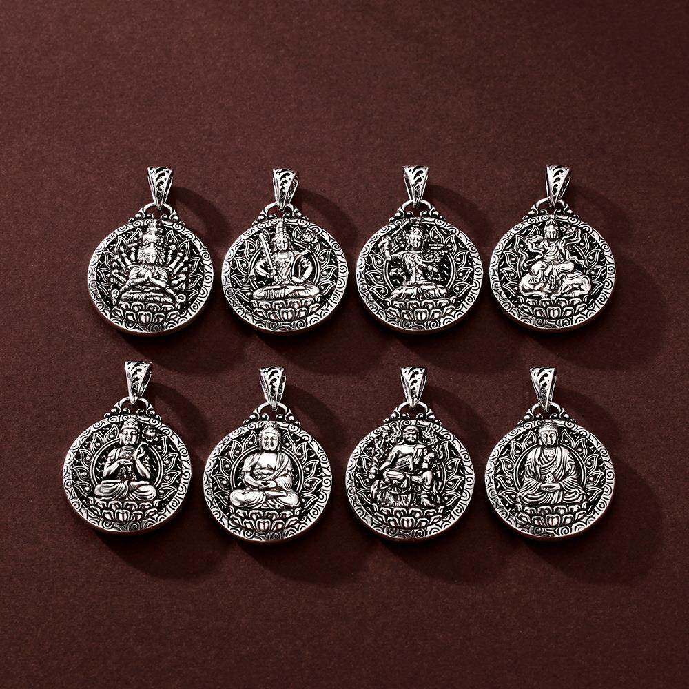 新品泰银复古十二生肖八大守护神大日如来本命佛六字真言项链项坠