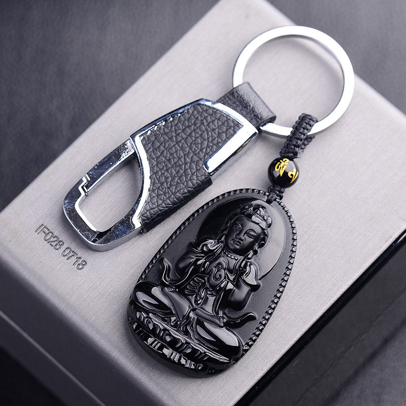 黑曜石属羊属猴人吊坠钥匙扣大日如来本命佛生肖猴羊挂件男女礼物