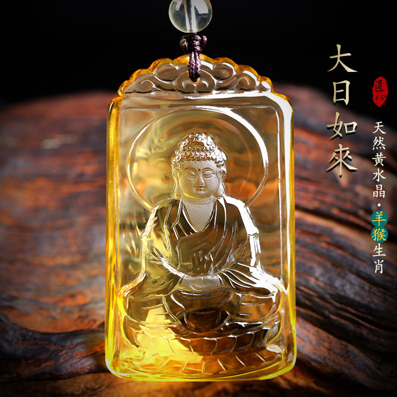 天然巴西黄水晶大日如来本命佛生肖属羊属猴守护神吊坠男女吉祥物
