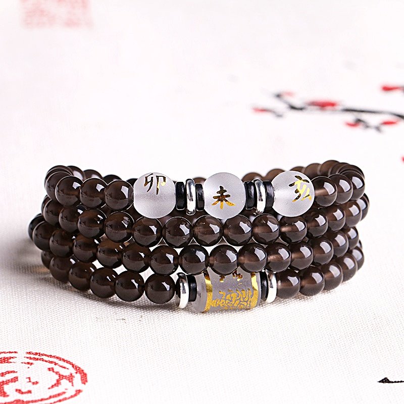 2025黑曜石属羊大日如来本命佛108佛珠手链猪兔羊水晶民族风手串