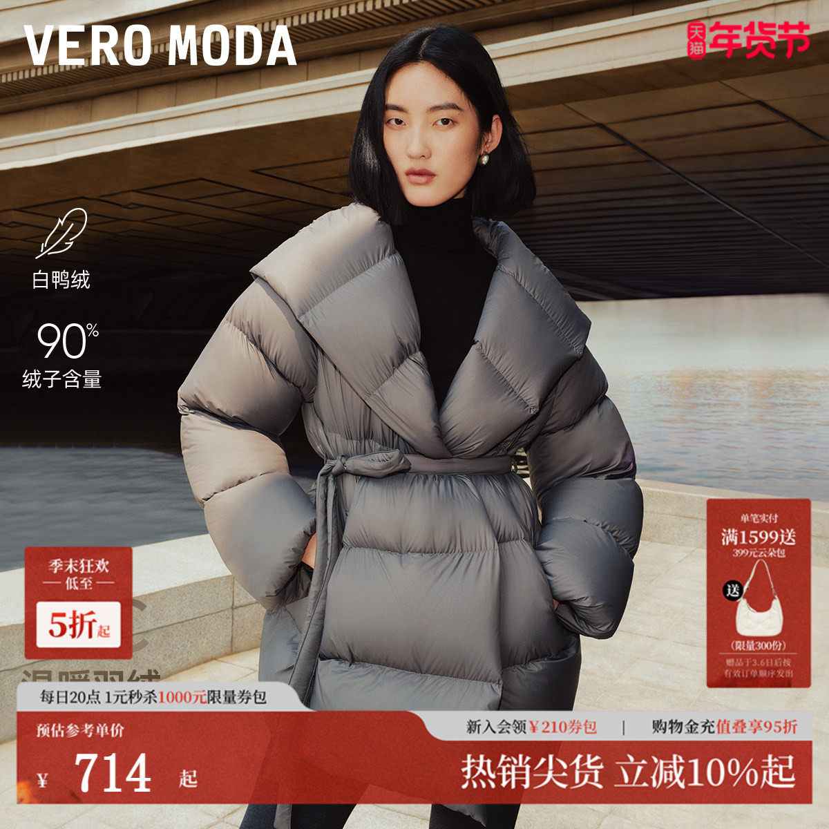 Vero Moda羽绒服女2025冬季新款90白鸭绒系带大被子长款云朵三防