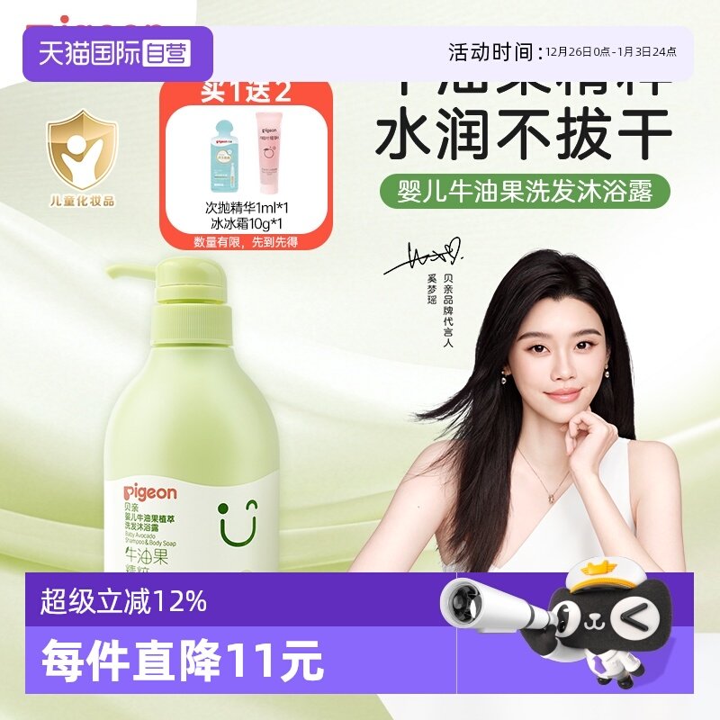 【自营】Pigeon贝亲儿童牛油果植萃婴儿洗发水沐浴露二合一480ml