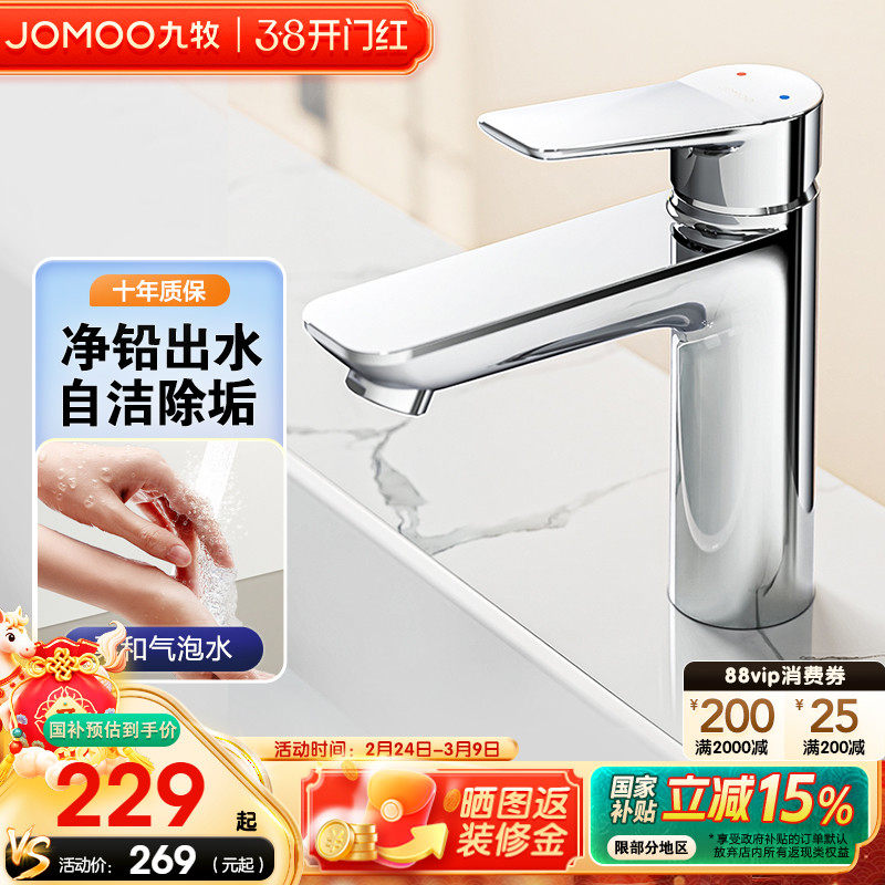 【焕新补贴15%】九牧卫浴水龙头冷热两用升降抽拉式卫生间洗脸盆