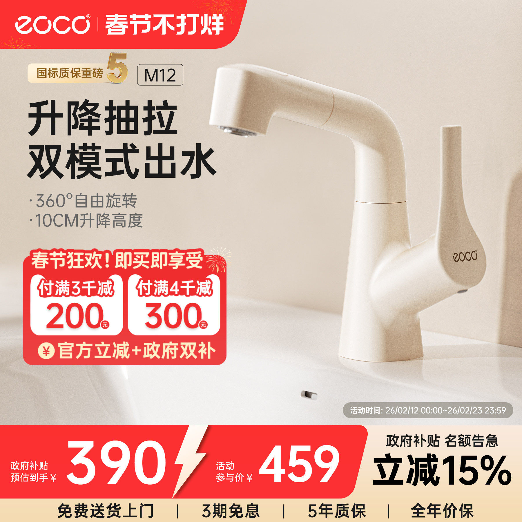 eoco-M12洗脸盆水龙头卫生间家用抽拉升降冷热两用洗漱洗手池龙头
