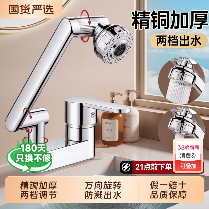 机械臂万向精铜洗脸盆水龙头冷热两用洗手盆卫生间洗脸池面盆家用