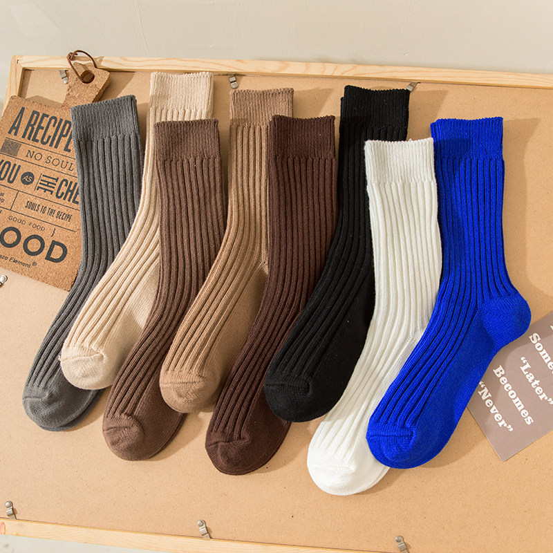 纯色日系粗线长袜子余文乐同款男女秋冬季中筒袜潮纯棉堆堆袜长筒