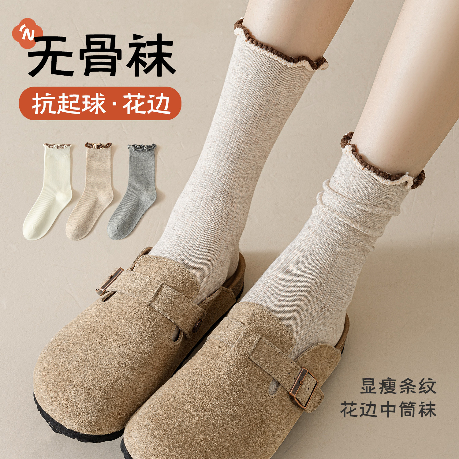 无骨袜子女夏季款纯棉堆堆袜木耳花边日系甜美吸汗搭勃肯鞋中筒袜