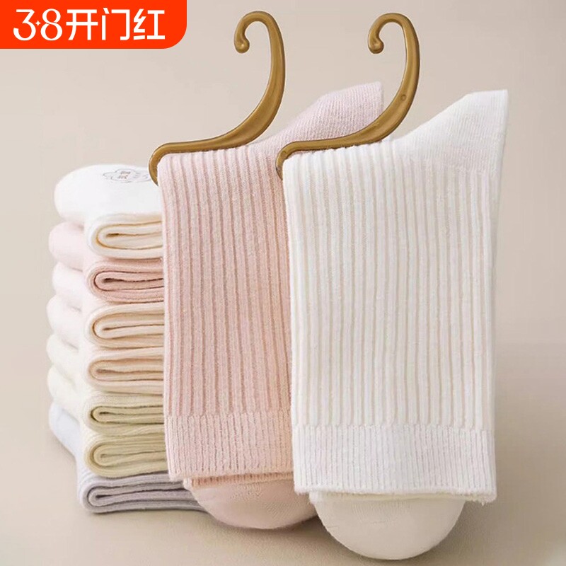 100%纯棉袜子女款春夏中筒袜2026新款爆款无骨月子秋冬白色堆堆袜