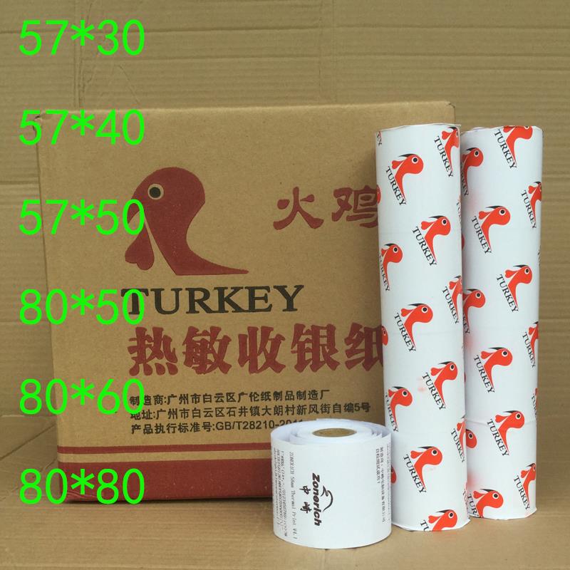 火鸡57x50mm超市纸58热敏小票40打印纸30收银纸8080美团60包邮