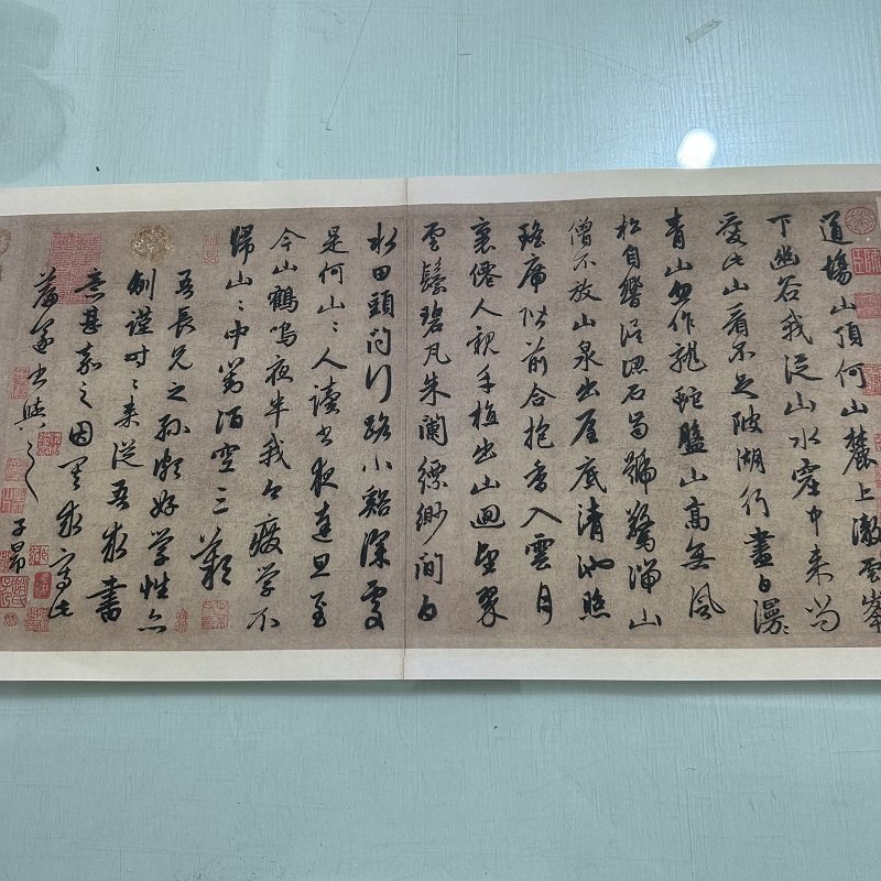 赵孟俯行书道场何山诗帖复古书法字画真迹微喷仿古画芯装裱装饰画