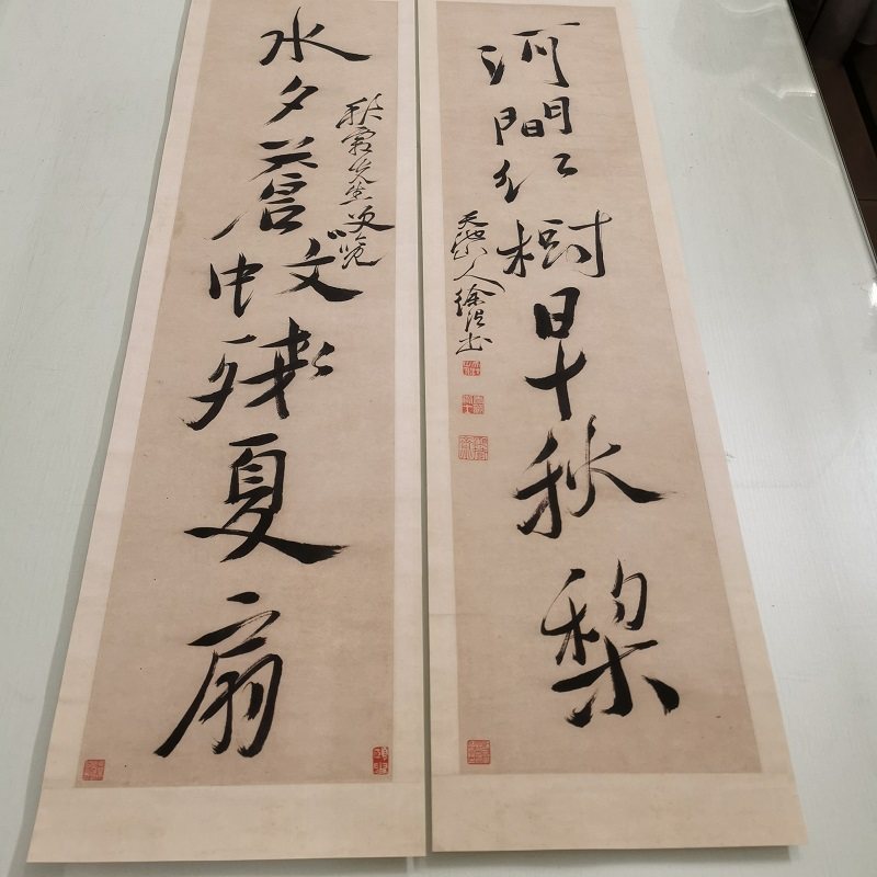 徐渭行书七言对联复古书法字画真迹高清微喷仿古画芯装裱挂轴装饰