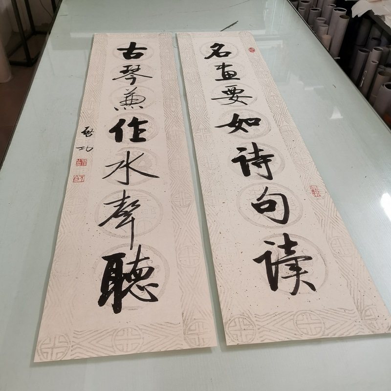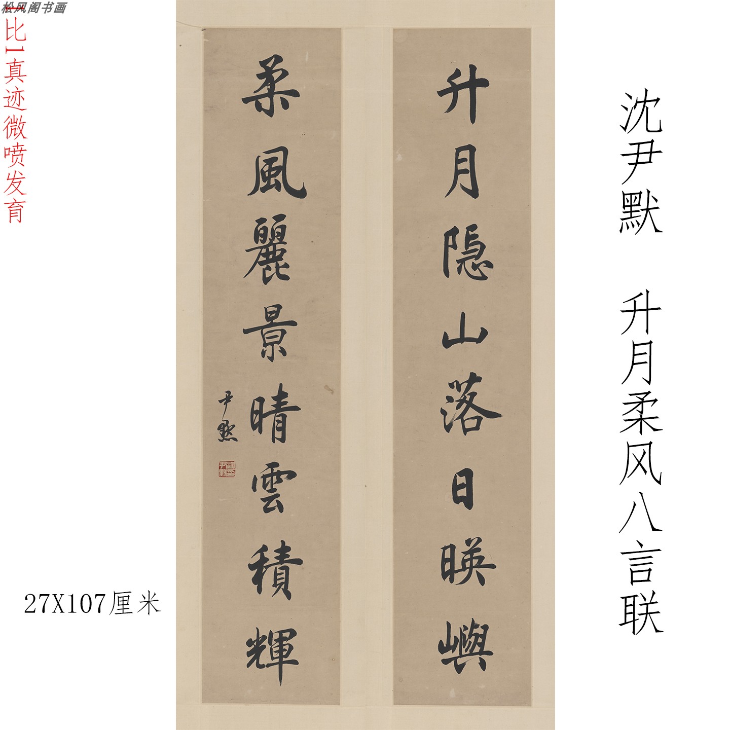 沈尹默书法对联升月柔风八言联复古字画真迹微喷挂画卷轴中堂装饰