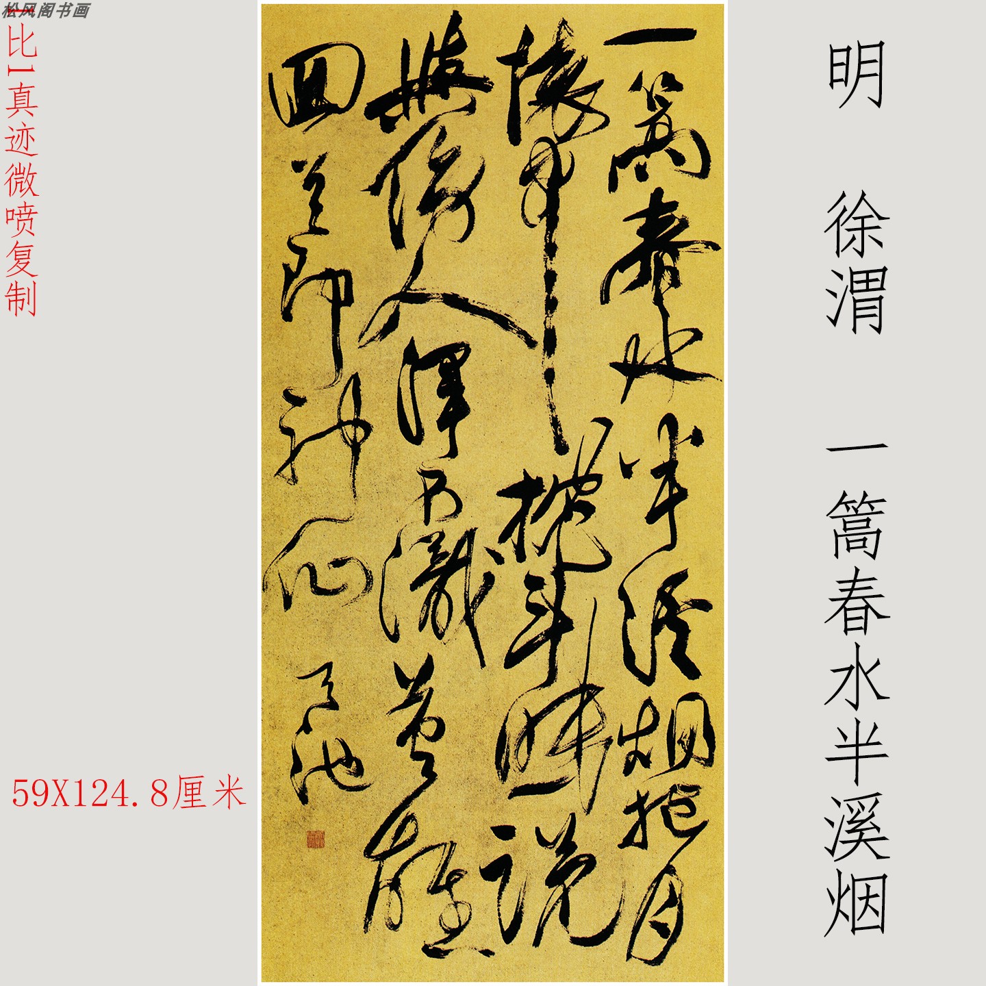 徐渭书法条幅一篙春水半溪烟复古字画真迹微喷挂画卷轴中堂装饰画
