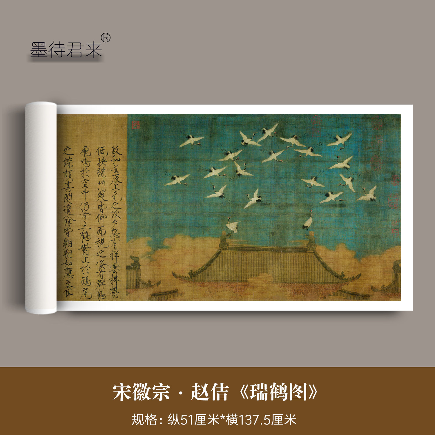 宋徽宗赵佶《瑞鹤图》古代字画真迹高清微喷复制品宋画花鸟画挂墙