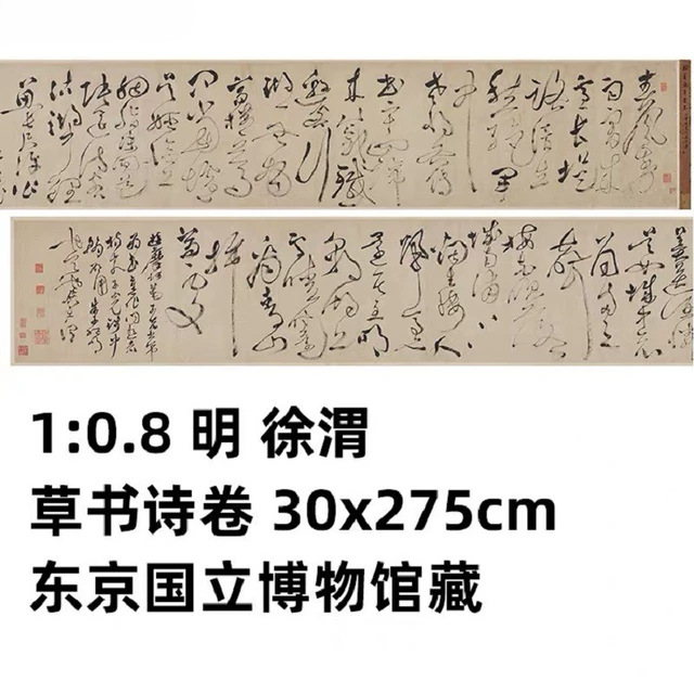 徐渭草书春雨诗卷复古书法字画真迹微喷仿古字帖装裱挂画卷轴装饰