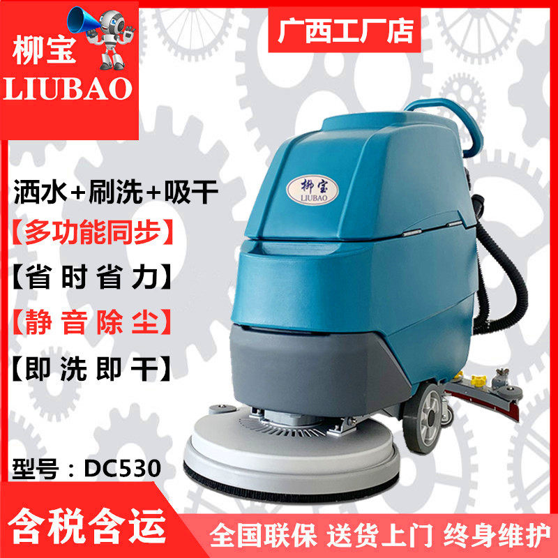 柳宝电动洗地机工厂车间吸干擦地机超市商场商用手推式电瓶拖地机
