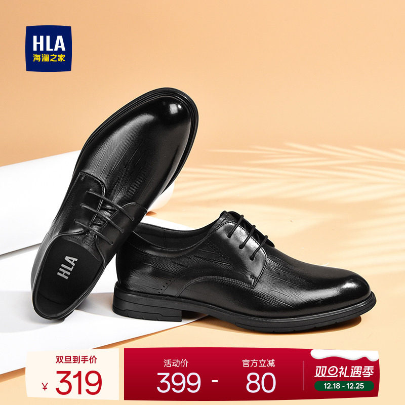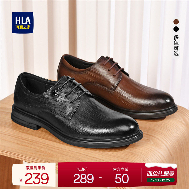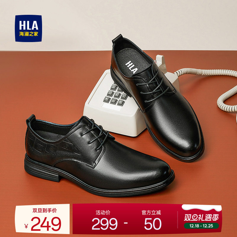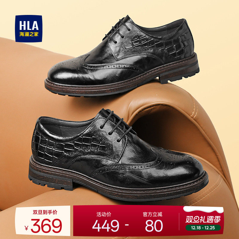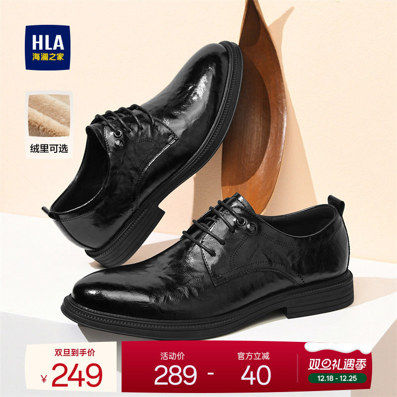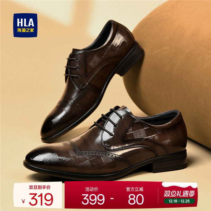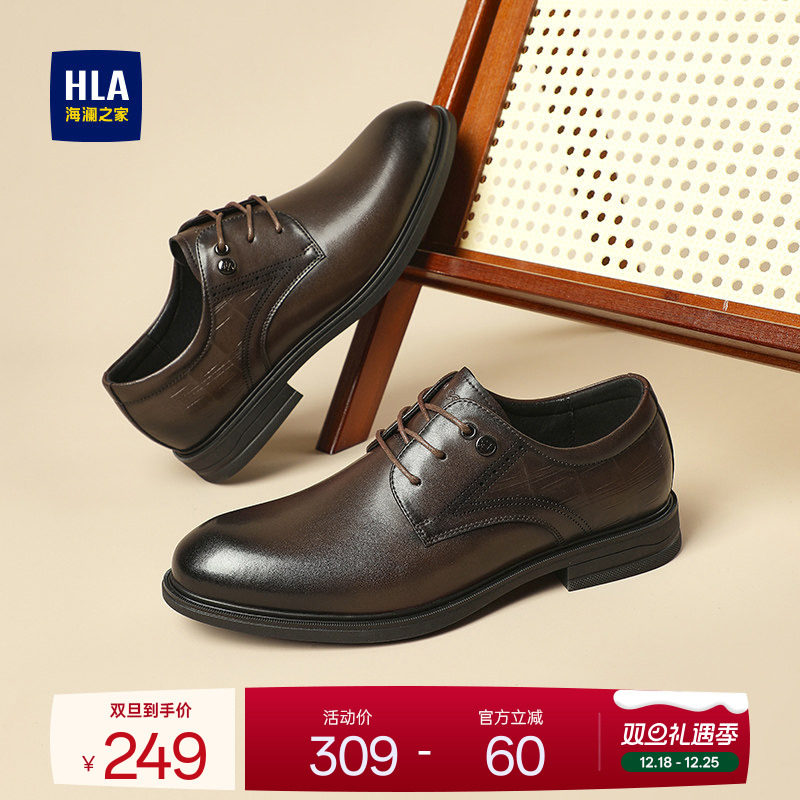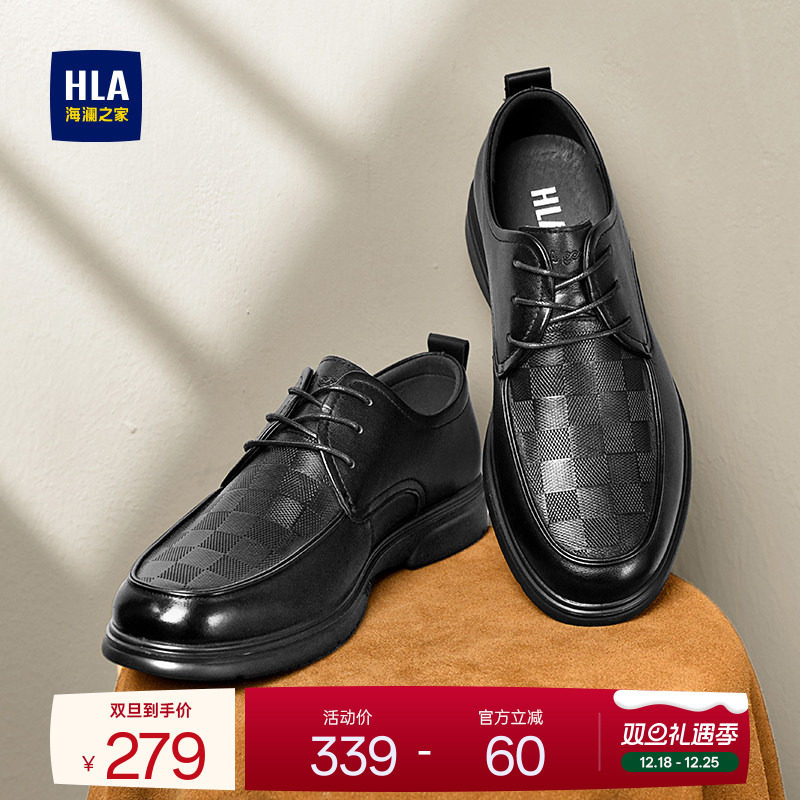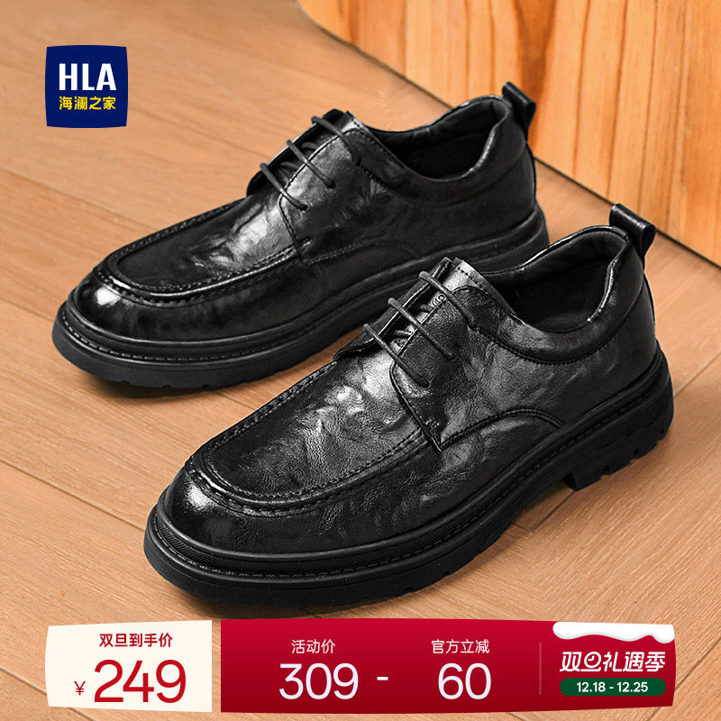 HLA/海澜之家男鞋新款秋冬商务通勤正装皮鞋复古压纹时尚流行系带