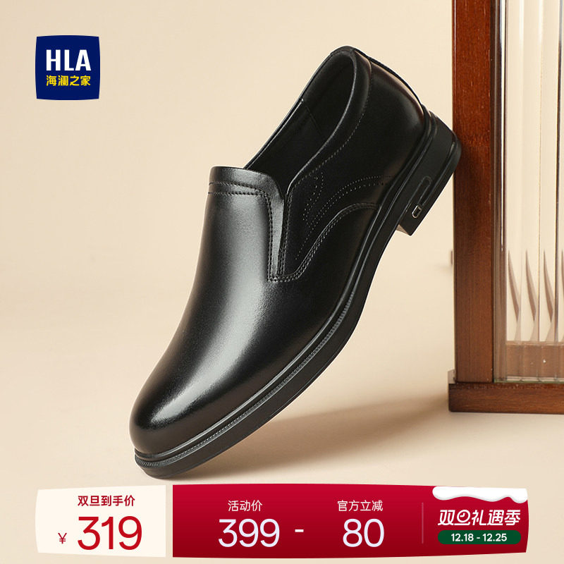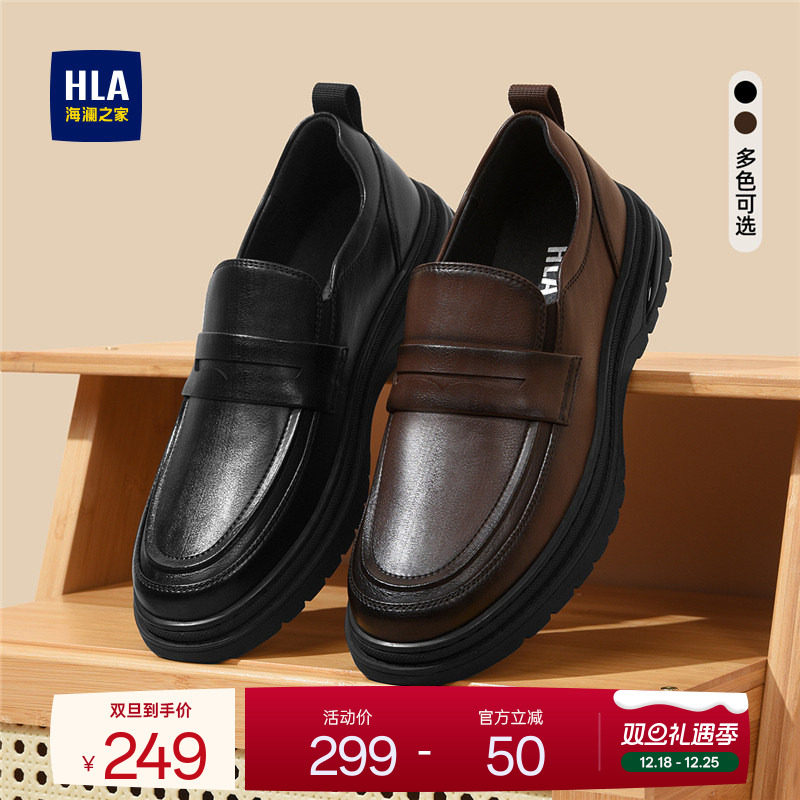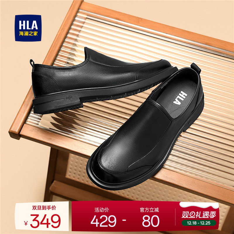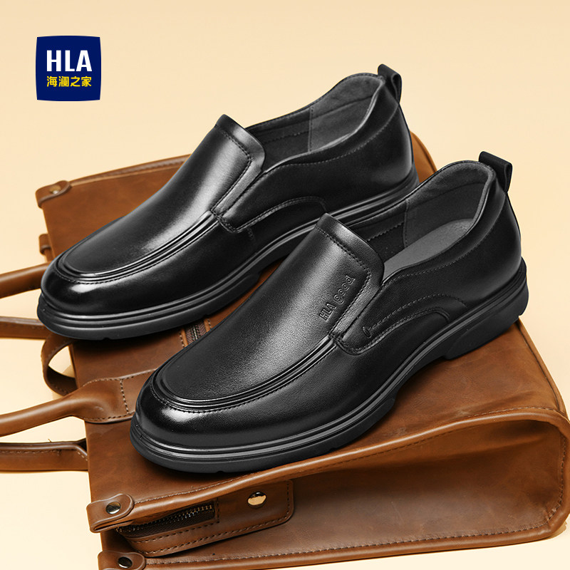 HLA/海澜之家男鞋新款秋冬真皮流行套脚皮鞋休闲透气软底中年鞋男