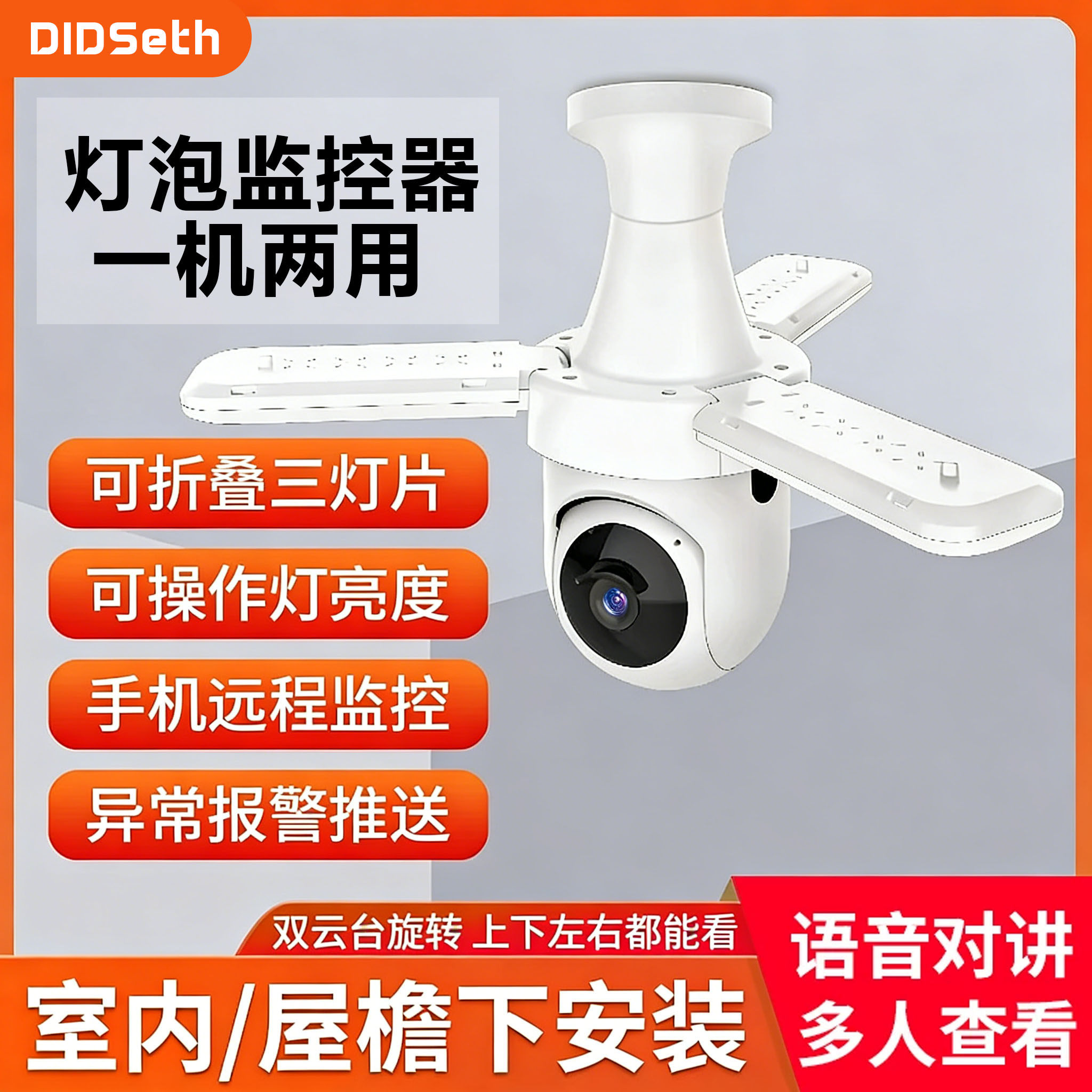 照明监控一体摄像头灯头式无线WiFi家用监控器手机远程高清夜视