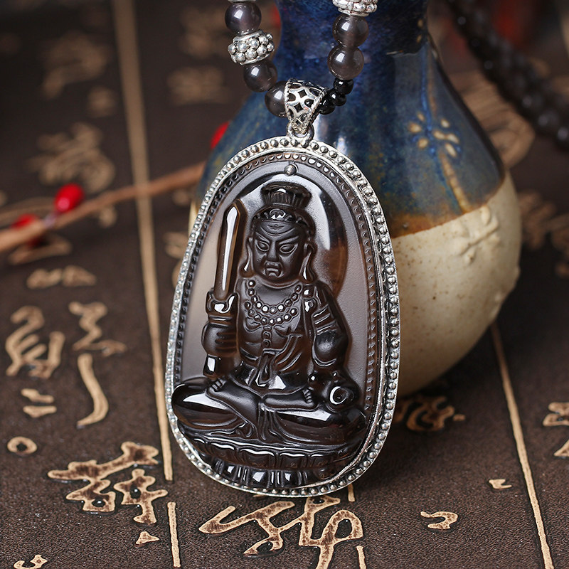 黑曜石不动尊菩萨吊坠生肖属鸡本命佛守护神不动明王挂件男女饰品