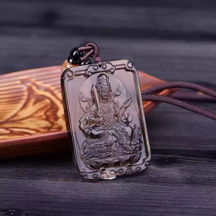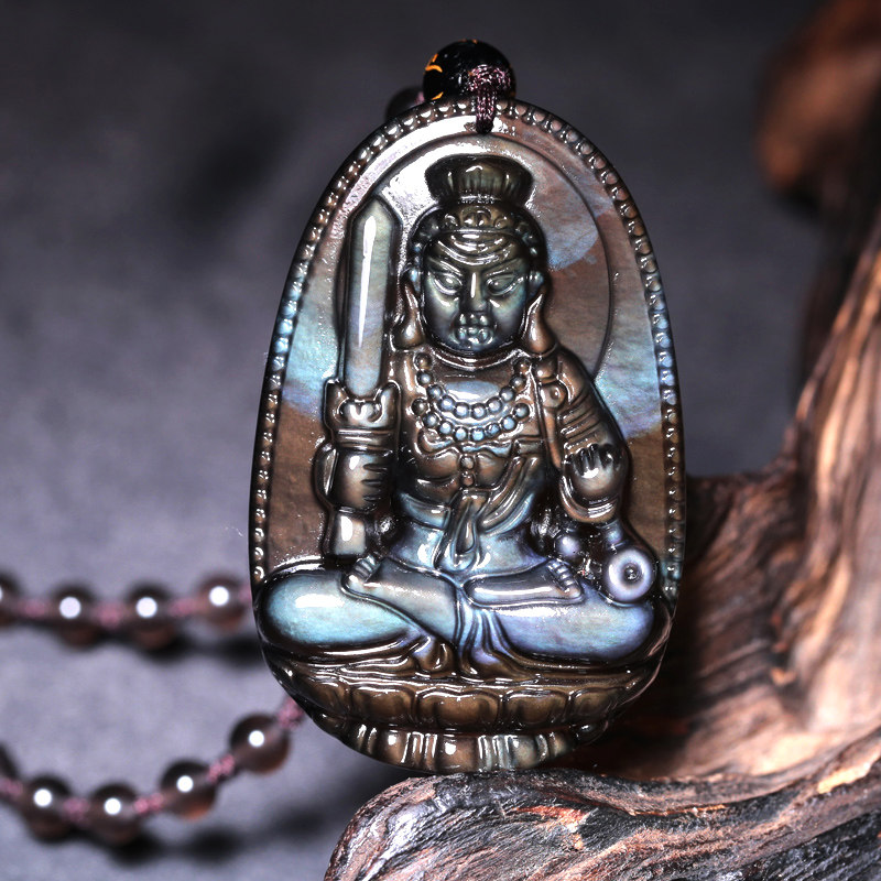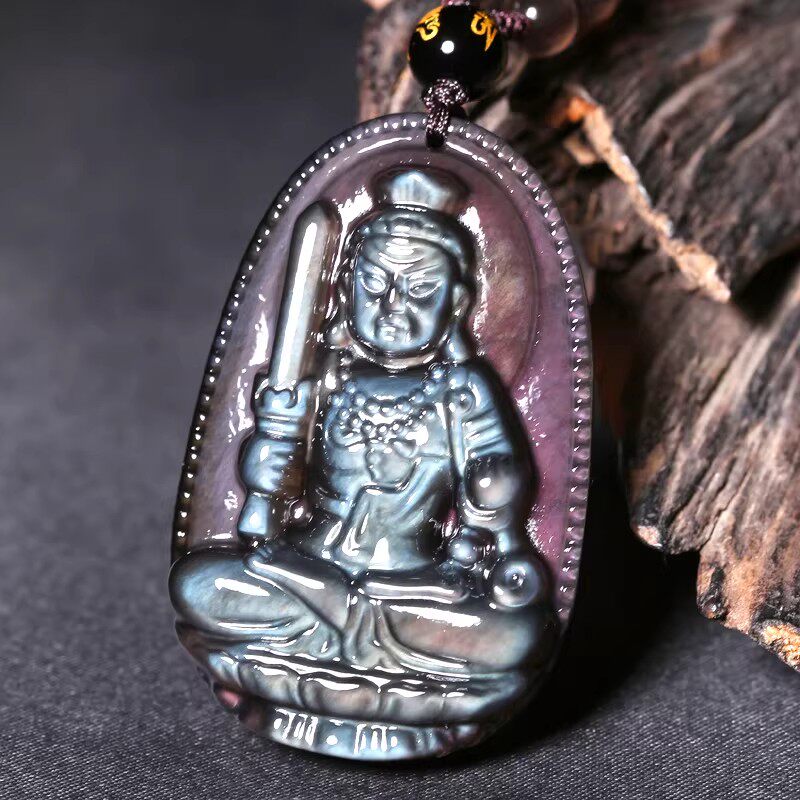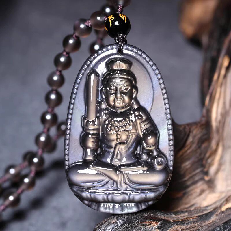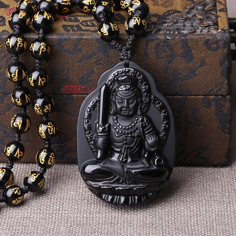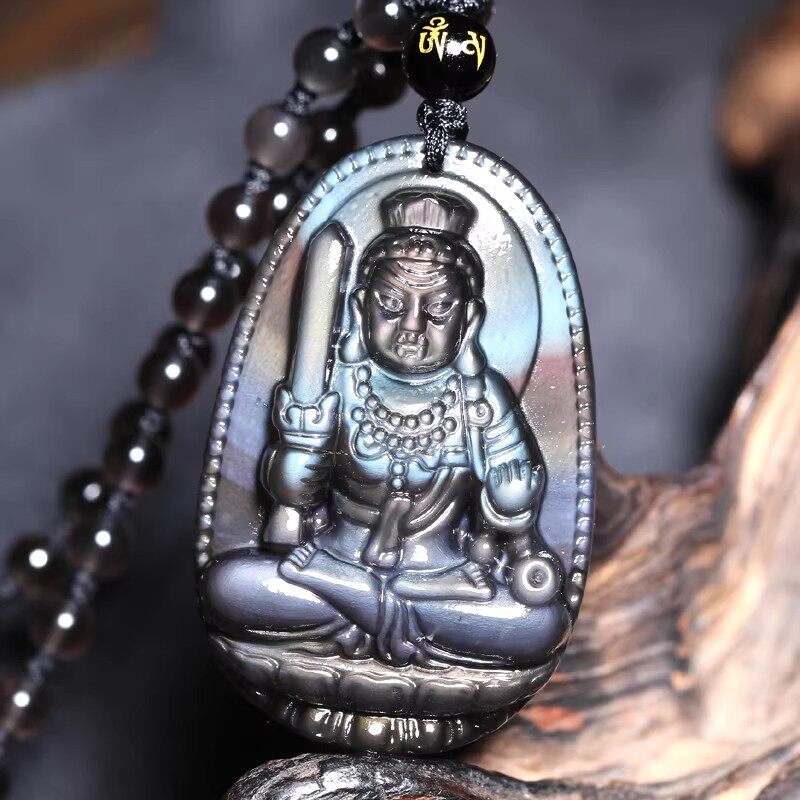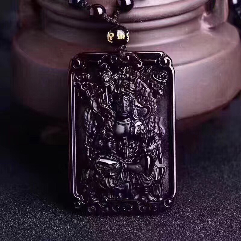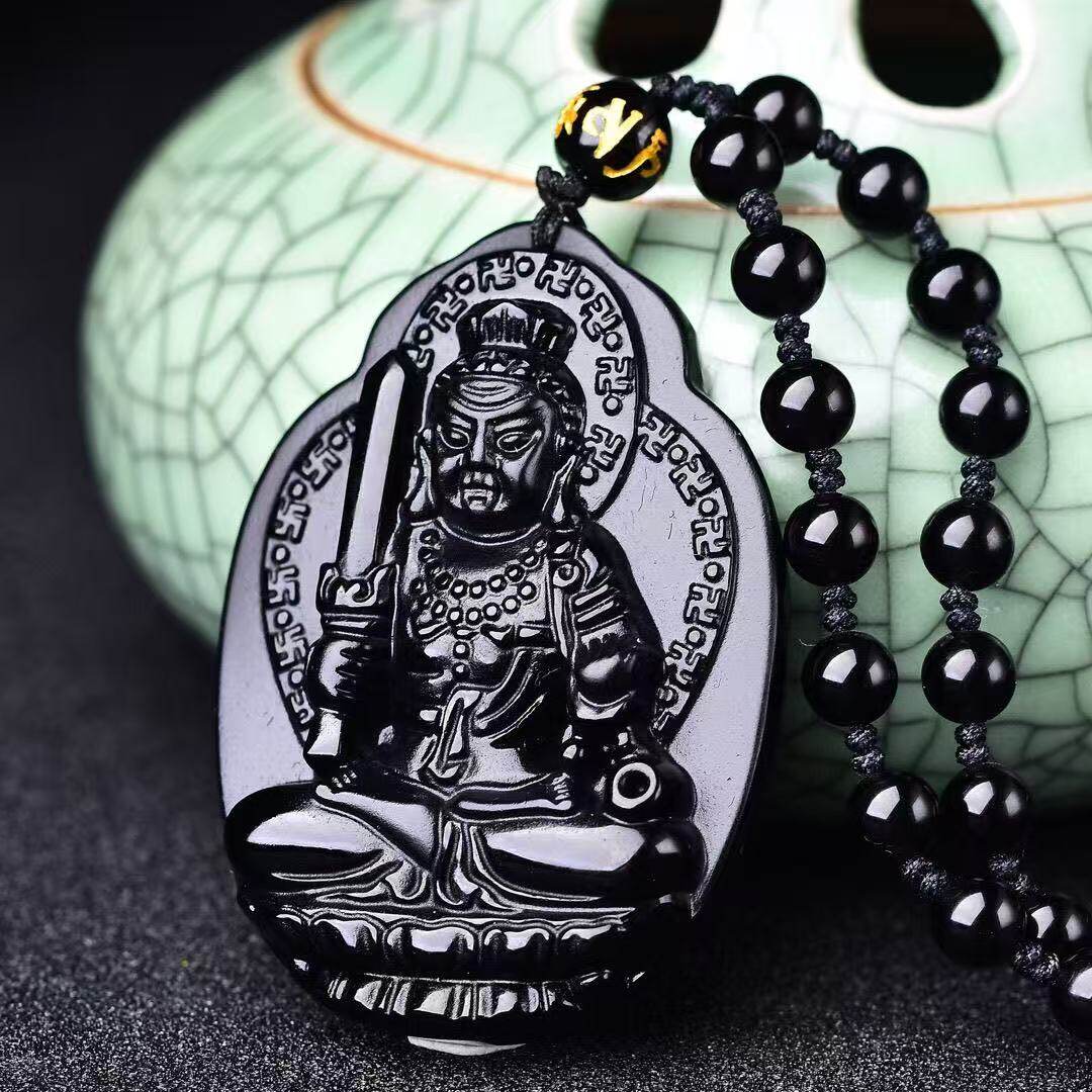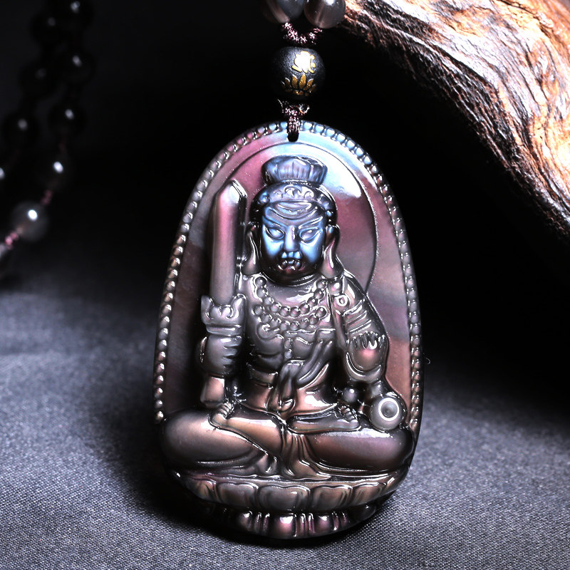 天然黑曜石本命佛吊坠文殊不动尊虚空藏菩萨挂件属鸡狗兔男女项链