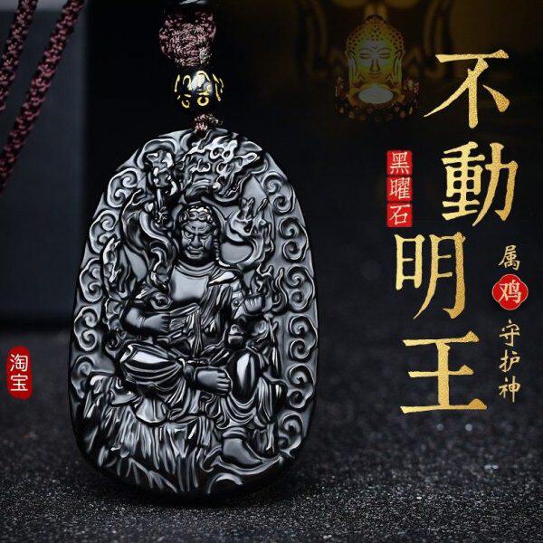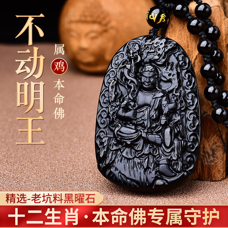 黑曜石不动明王菩萨本命佛12生肖属鸡鸡年吊坠守护神男女礼物饰品