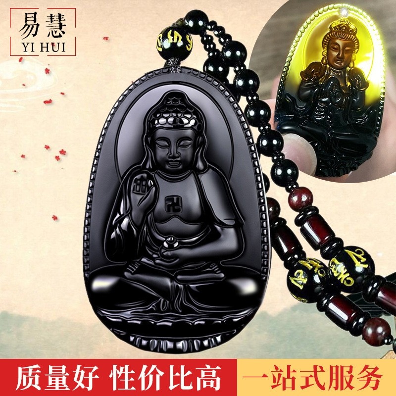 天然冰种黑曜石本命佛吊坠男女黑耀石不动尊菩萨属鸡千手观音属鼠