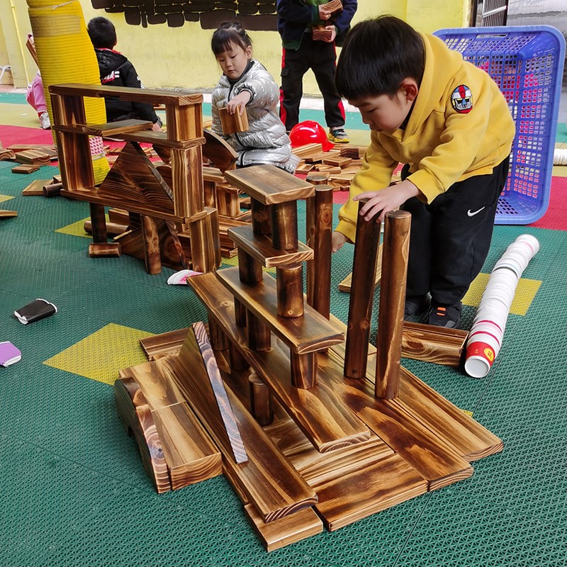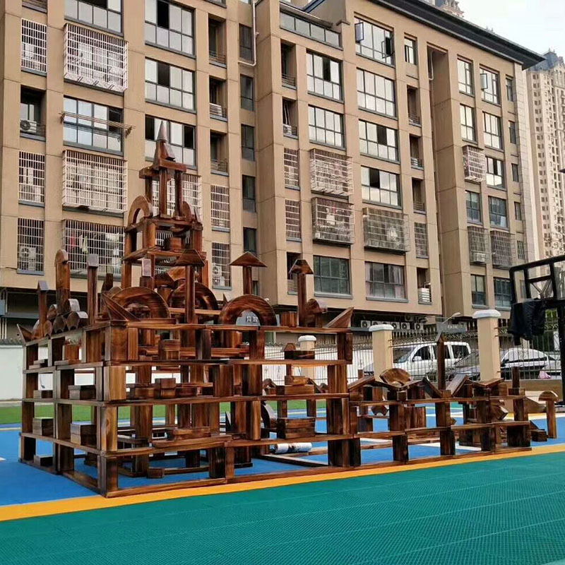 幼儿园超大型户外碳化大积木原木炭烧儿童建构区材料搭建实木玩具