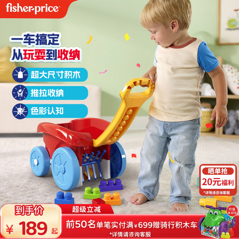 费雪美高旋转超大积木手推车可折叠宝宝抓握收纳拼搭创意早教益智